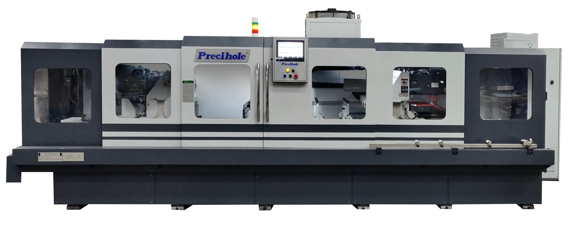 Deep Hole and Gun Drilling Machines enable manufacturers to produce long, precision bores required for turbine cooling passages, directional drilling tools, hydraulic systems, and other energy components requiring deep, straight holes. Precihole gun drilling machines, which Absolute has represented for over 30 years, reach depth-to-diameter ratios of 100:1 or more while holding straightness within a few thousandths of an inch per foot of depth.