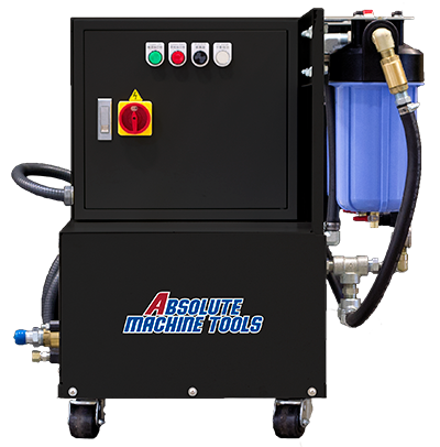Absolute Machine Tools offers a full line of high pressure oil and coolant unit systems designed to enhance machining performance, reduce cycle times, and improve tool life. By delivering coolant directly to the cutting zone at pressures up to 2,900 PSI, these systems remove heat, evacuate chips more effectively, and ensure better surface finishes. Optional chiller units remove excess heat from CNC machines and cutting fluids to maintain precise temperatures, preventing thermal expansion that causes inaccuracies, improving part quality, extending tool and machine life, and boosting productivity by allowing faster machining speeds. Our high pressure fluid systems are ideal additions for shops focused on increasing productivity and consistency across turning, milling, and Swiss applications.
