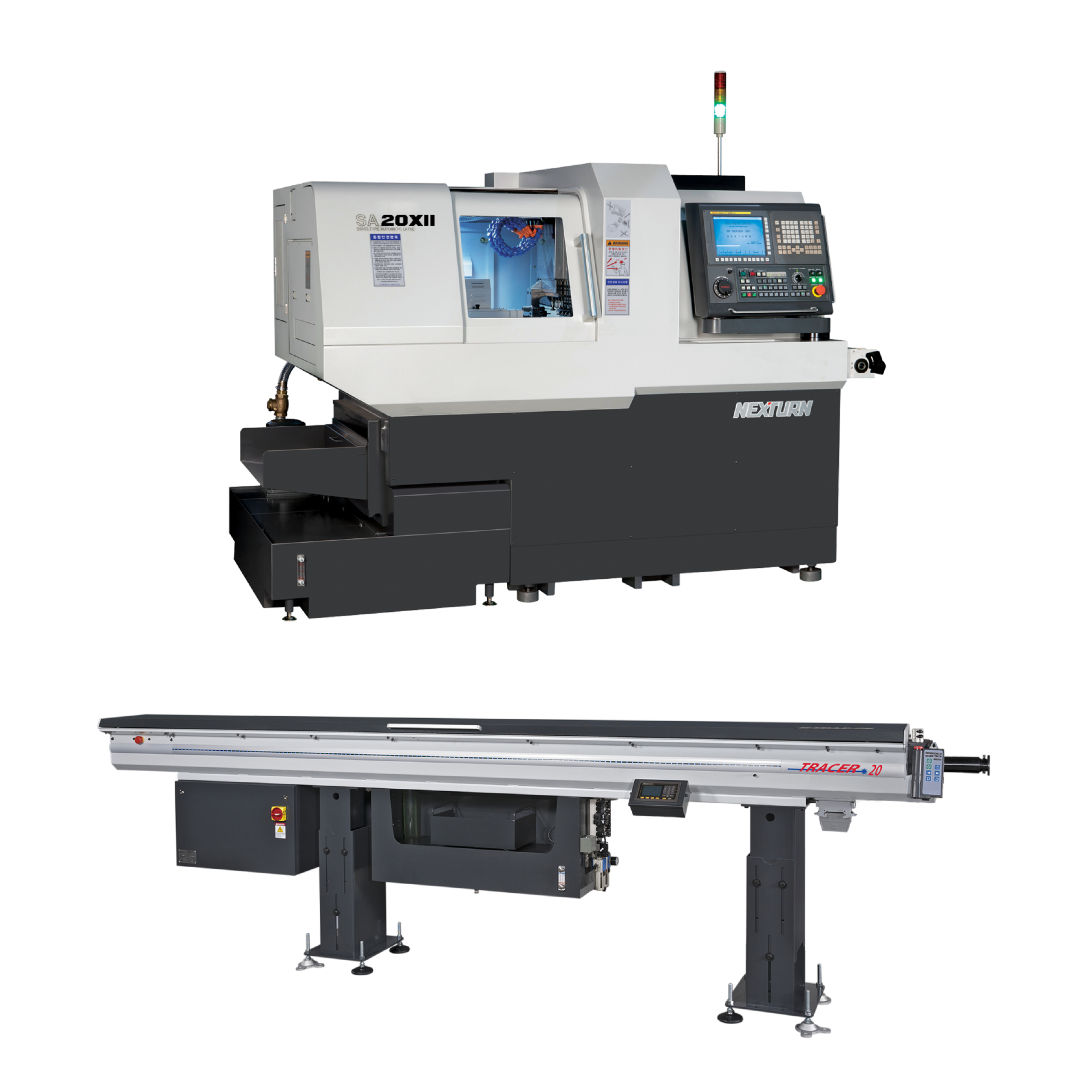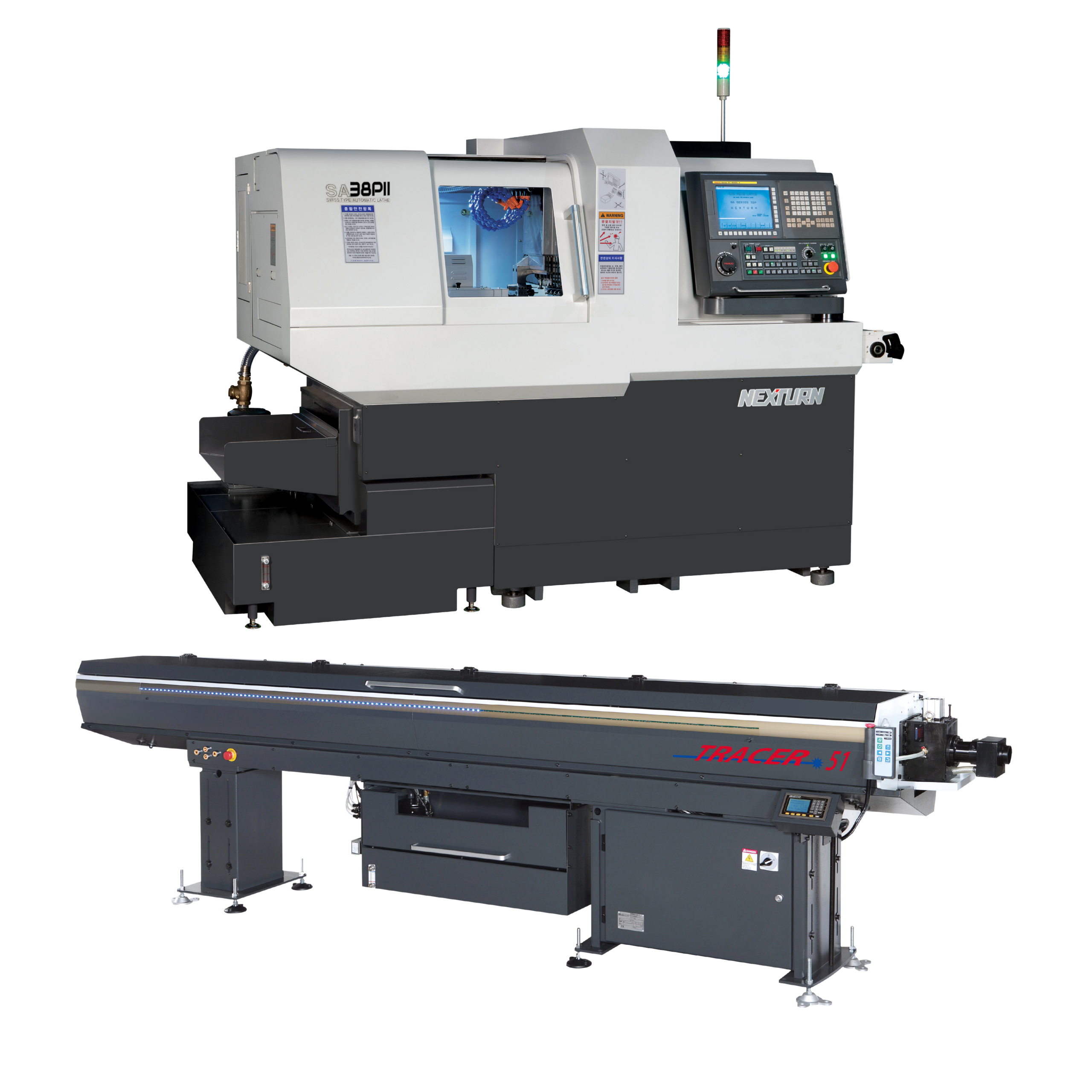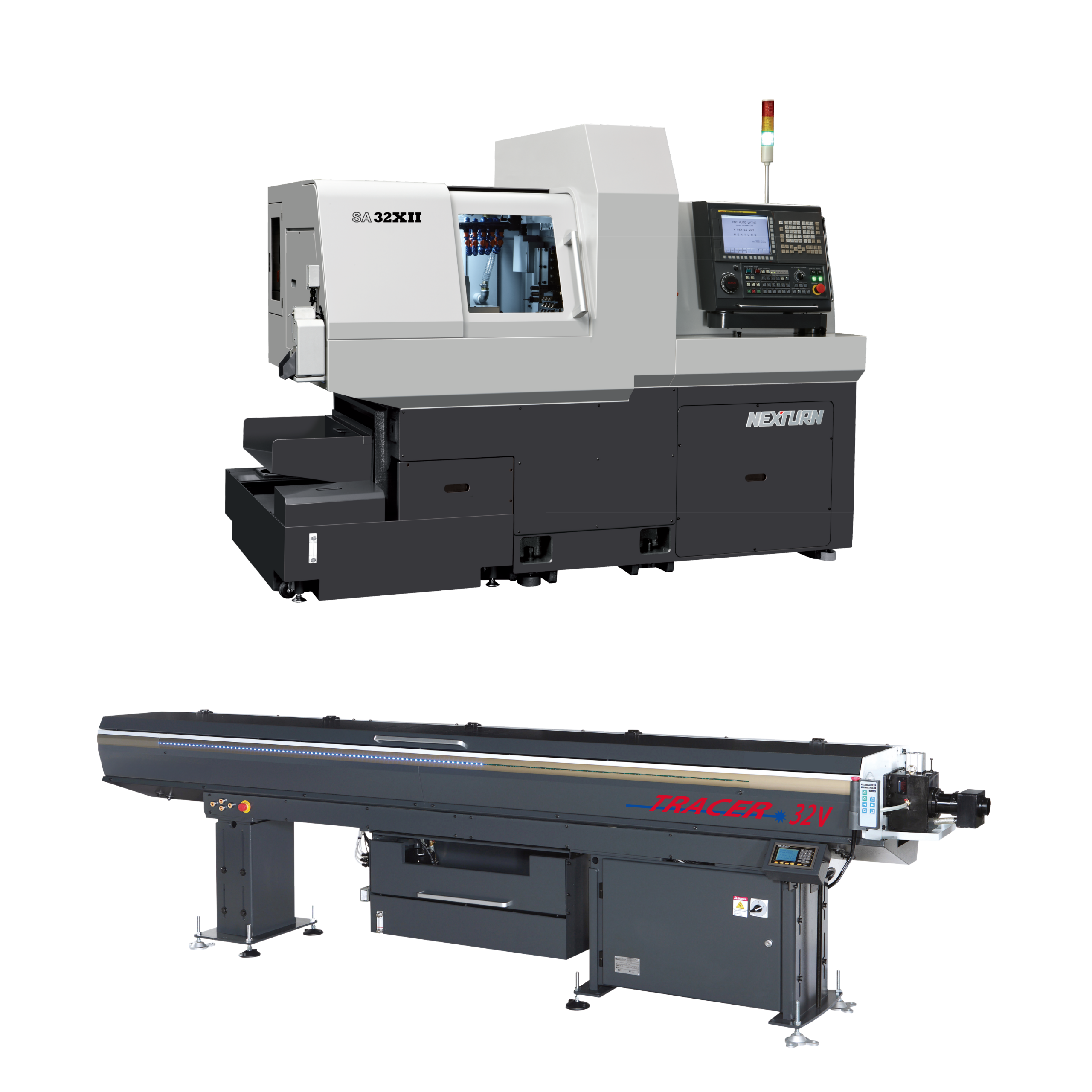 Is there a catch? The answer is NO. When you buy a Nexturn CNC Swiss lathe from Absolute Machine Tools, we will pair it with a new free TRACER hydrodynamic magazine bar feeder. This generous free bar feeder offer includes installation of the corresponding TRACER bar feeder in one incredible package price. For more information, scroll down to the Nexturn Swiss lathe you’re most interested in and see the matching FREE TRACER hydrodynamic magazine bar feeder that will be included with your order.